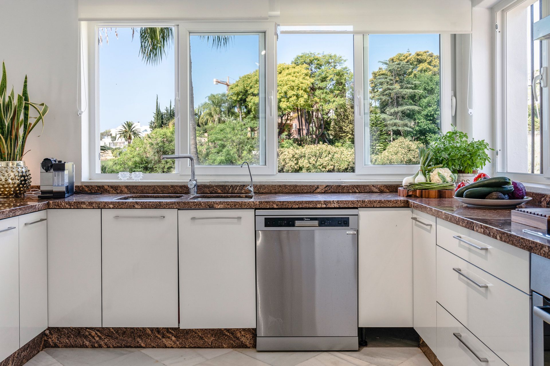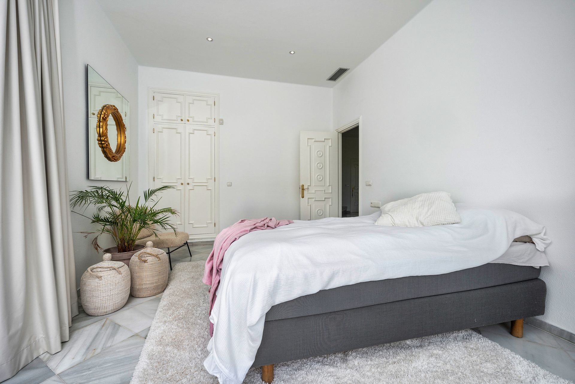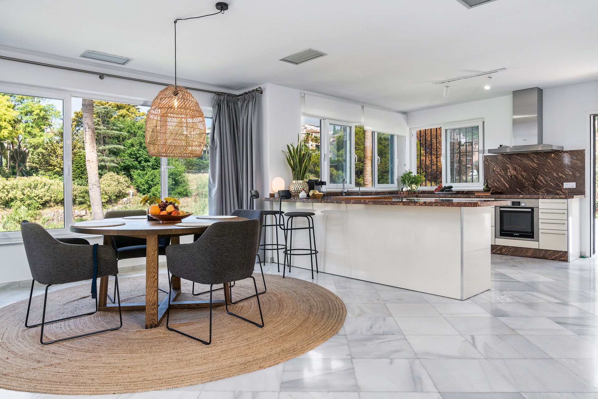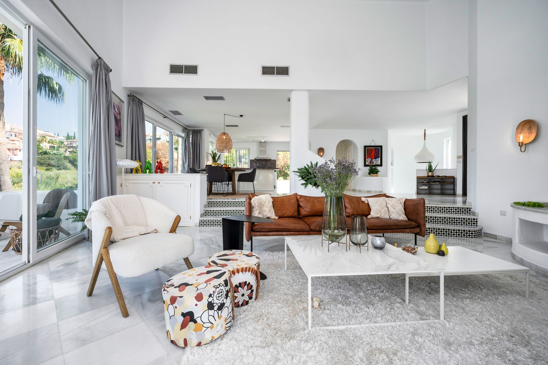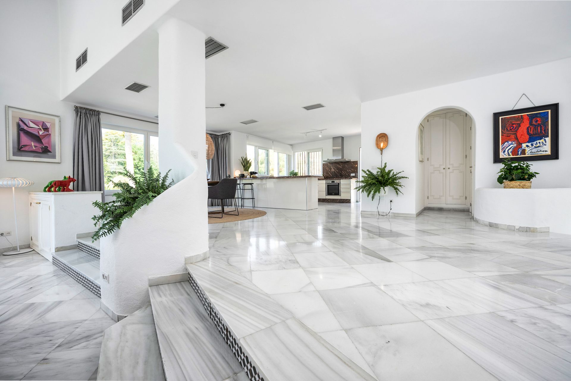 Location: This south-west facing villa was constructed in 1982 and spans two floors with a total building size of 318m2 on a generous 1,884m2 plot in the prestigious neighborhood of Nueva Andalucia. The house has 4 bedrooms, 3 bathrooms, and a guest toilet for a comfortable living environment. Space: Casa Maria boasts a lovely Scandinavian-style interior with spacious, light-filled rooms that require renovation. Given that the owner has renders for a new project, whose license clearance is still pending, the buyer has a fantastic opportunity to add their own flair to this big property.