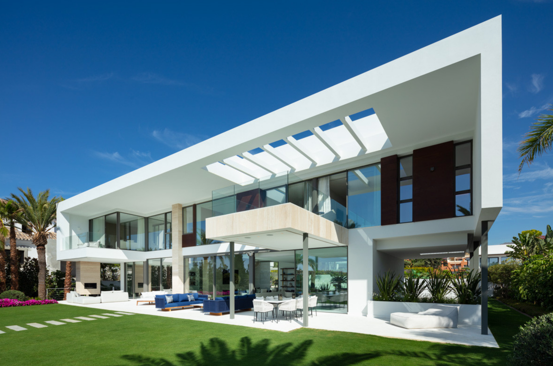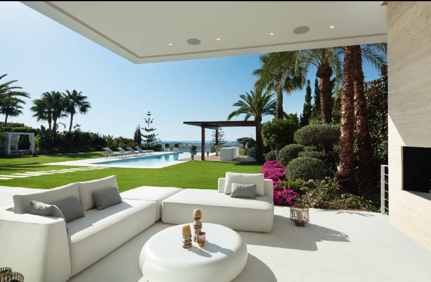 Experience the epitome of luxury with this stunning modern villa in Cerquilla, Nueva Andalucía, available for unforgettable holiday rentals. As the most modern property in the area, it perfectly combines sophistication and comfort. Nestled in Marbella's prestigious neighborhood, this villa is surrounded by renowned golf courses, lush landscapes, and breathtaking views. From the Mediterranean Sea stretching out front to the vibrant greenery on either side, the scenery is nothing short of spectacular.