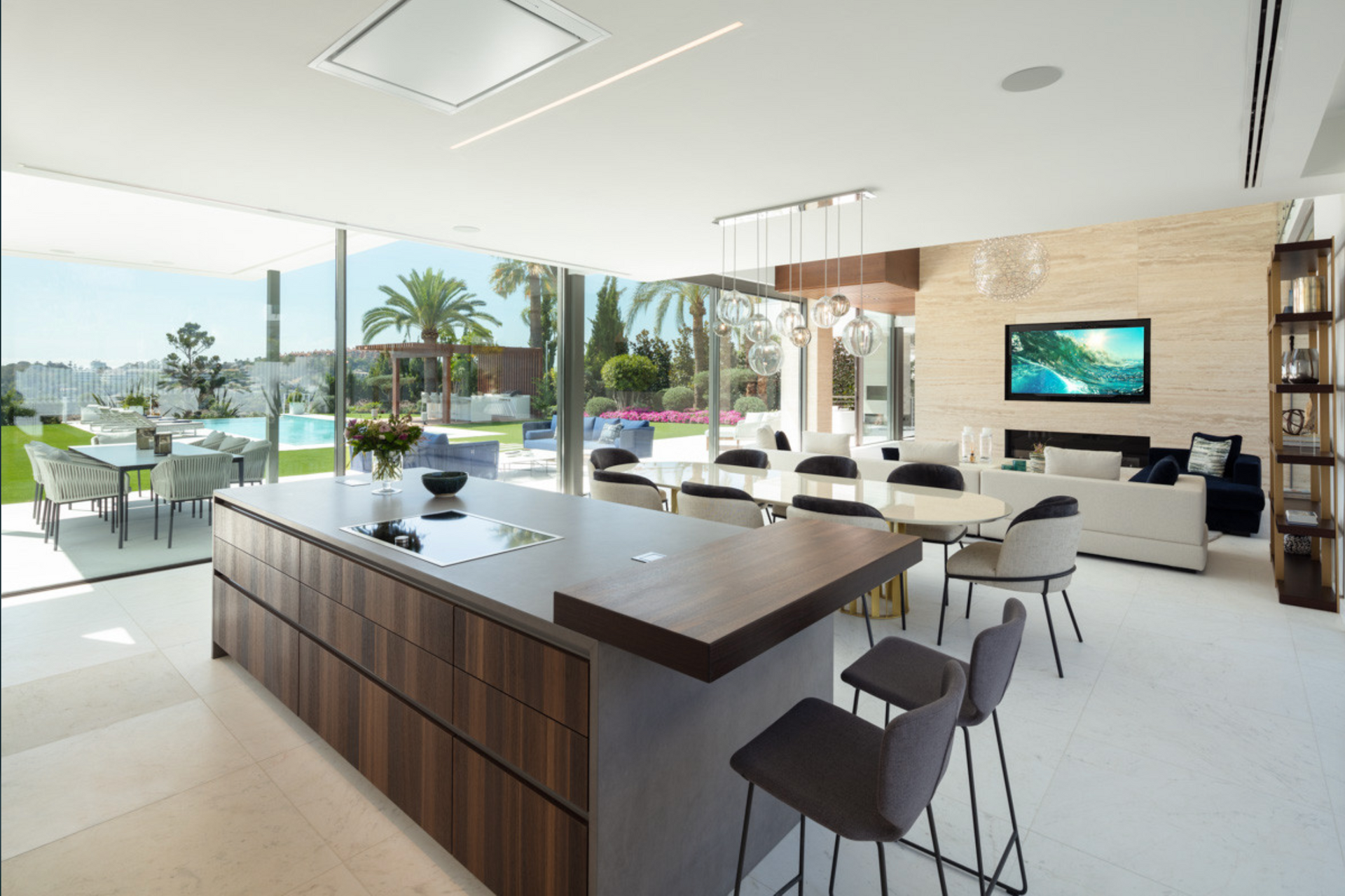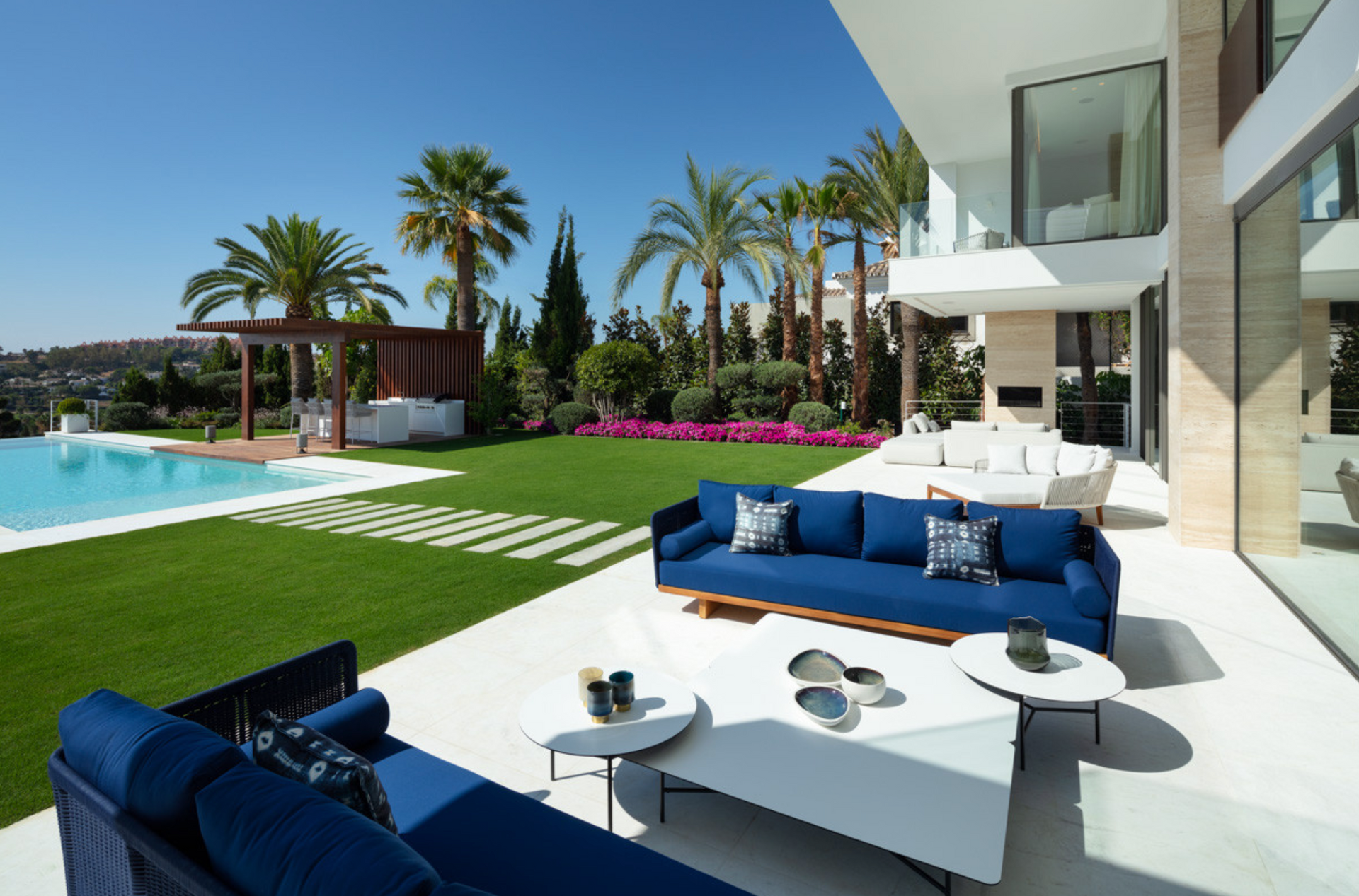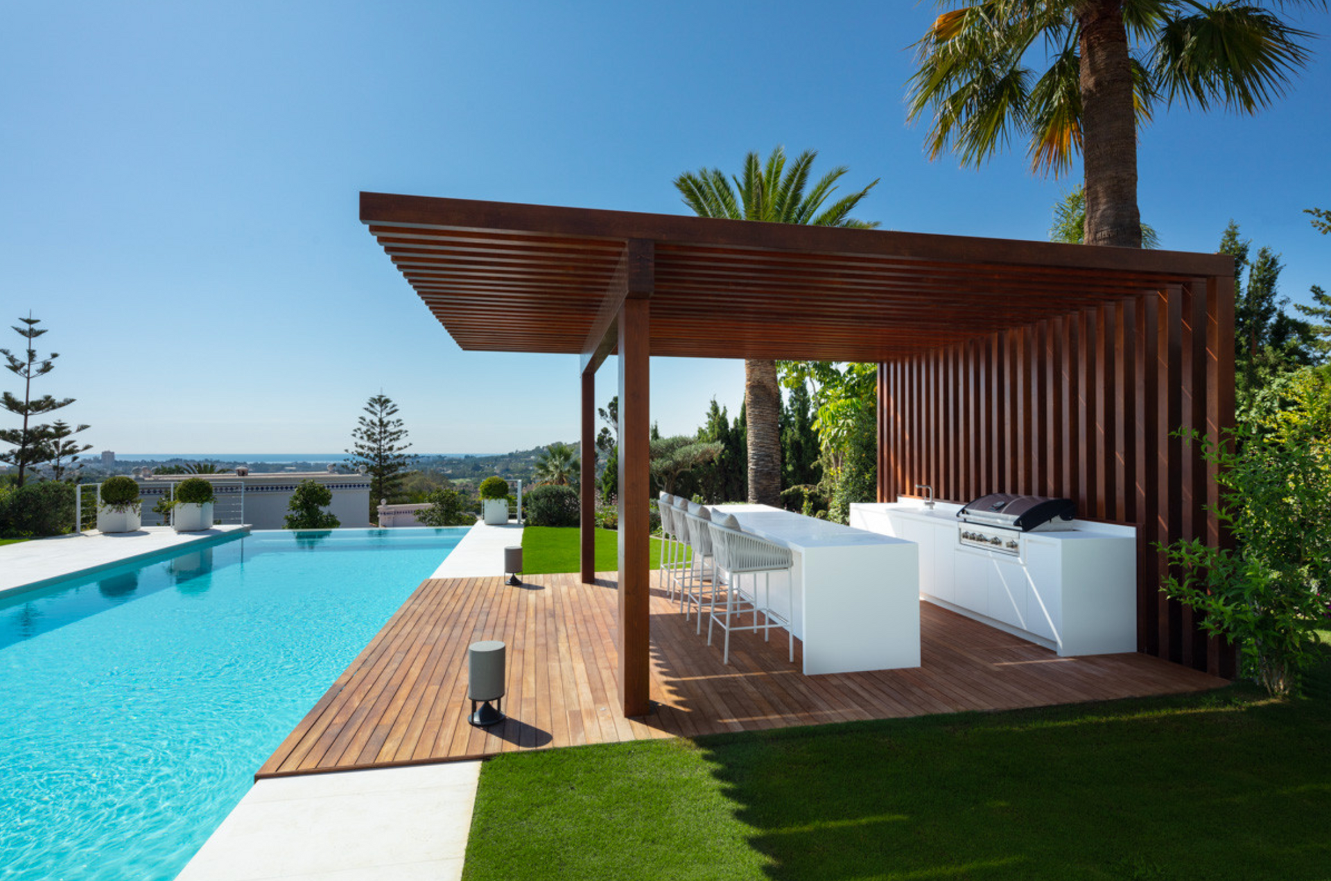 Outdoors, the villa offers a lavish infinity pool, a chic lounge and dining area, and an outdoor kitchen—perfect for making the most of Marbella’s glorious climate.