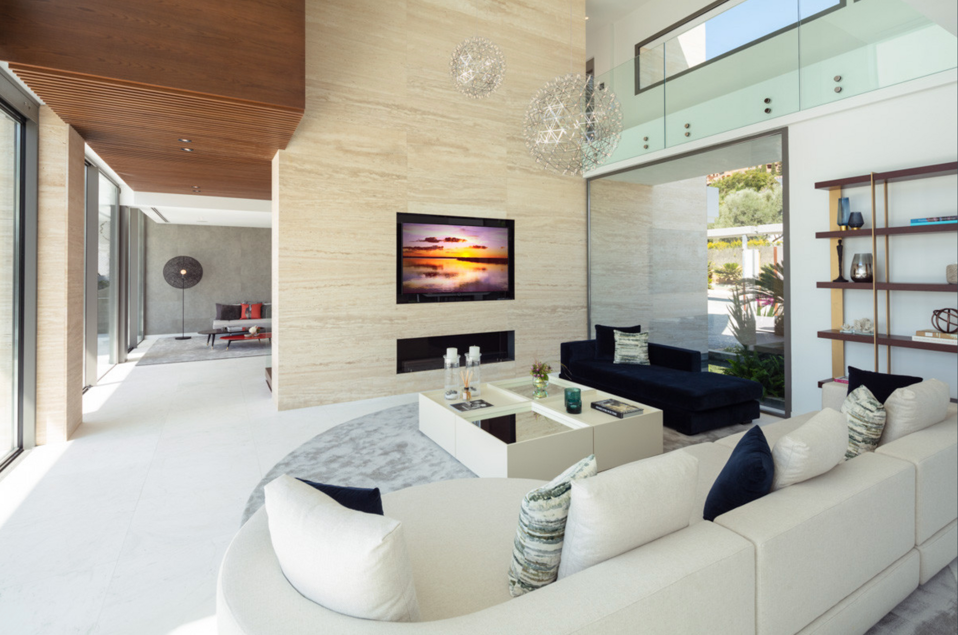 Completed in 2020, this state-of-the-art villa is built to the highest standards and spans three floors plus a rooftop solarium, all seamlessly connected by a private lift. Every corner is designed to offer unparalleled luxury and convenience. Step inside and be welcomed by open-plan living spaces, including a stylish living room with a cozy fireplace, an elegant dining area, and a sleek modern kitchen equipped with top-tier appliances.