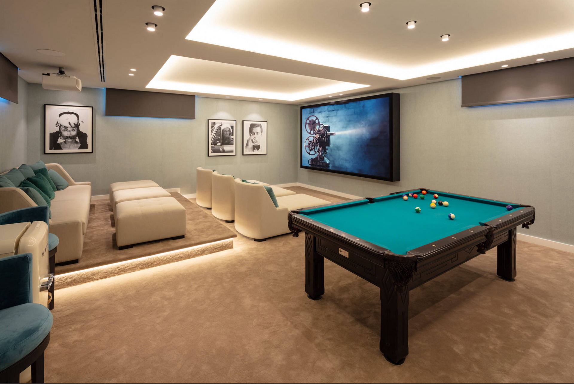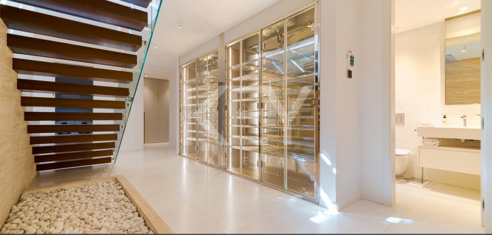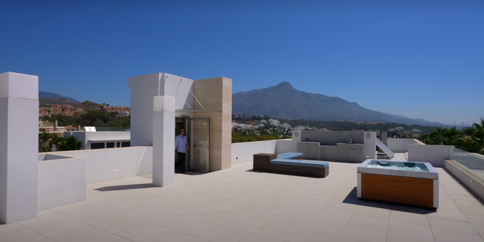 Take the lift down to the basement and discover a haven of entertainment and wellness. Enjoy a private cinema and games room, a fully equipped gym with a sauna, and a sophisticated wine cellar. For even more indulgence, head up to the rooftop solarium, where you can relax on an open terrace and soak in panoramic sea views.