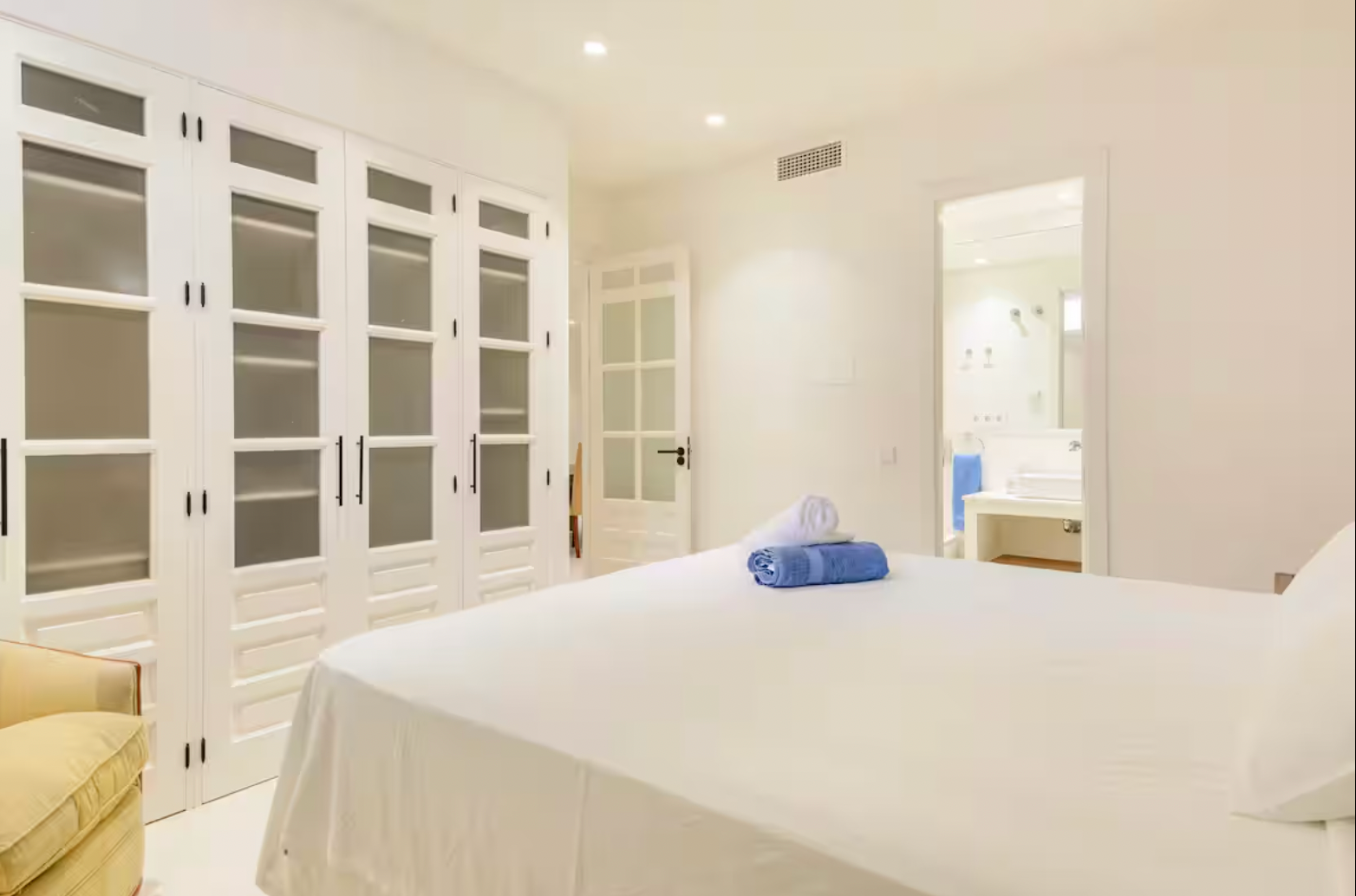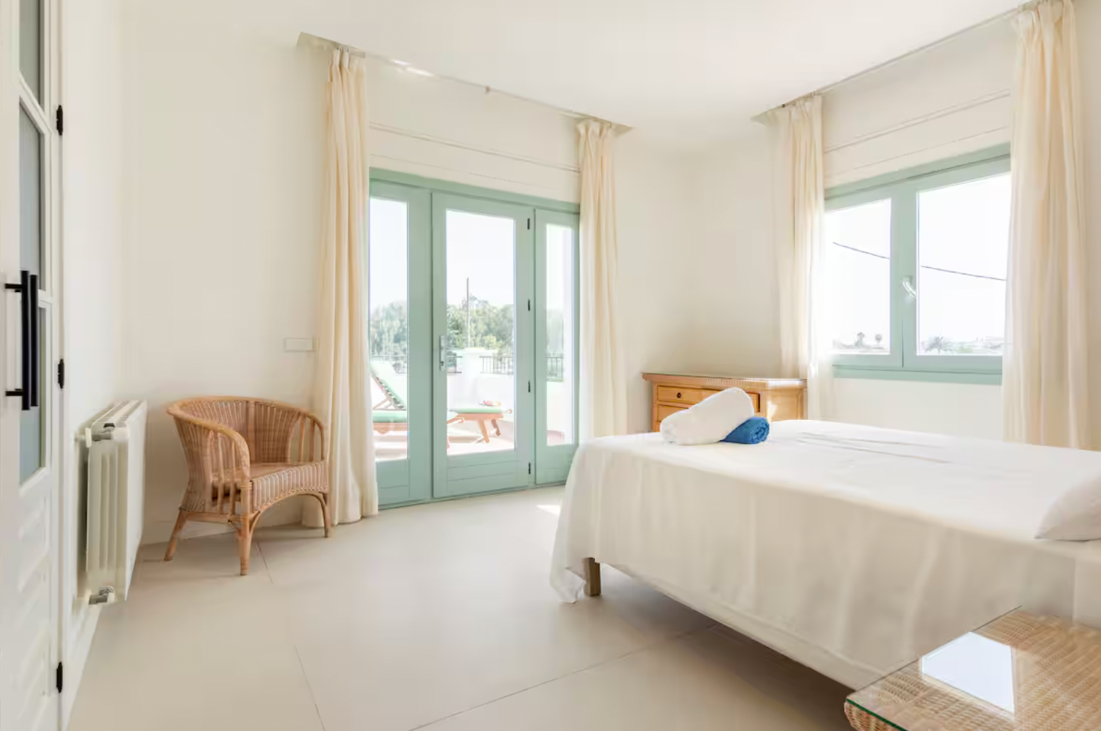 The villa features five spacious bedrooms, each thoughtfully designed for comfort and relaxation. Large windows fill the rooms with natural light, while the soft color palette and tasteful decor create a serene atmosphere.