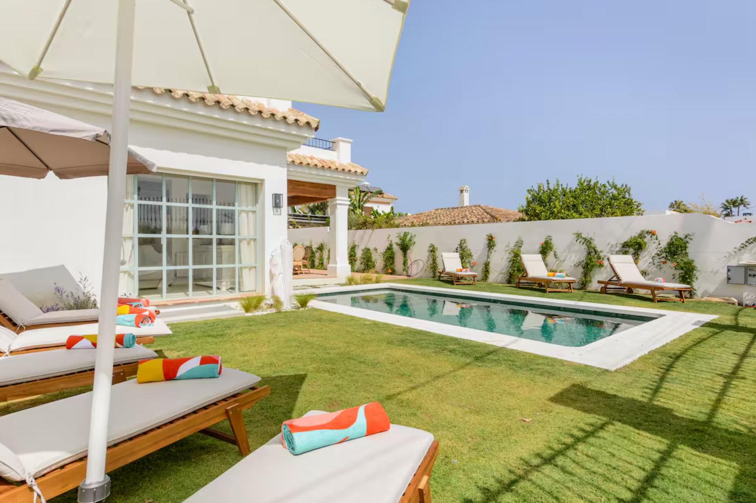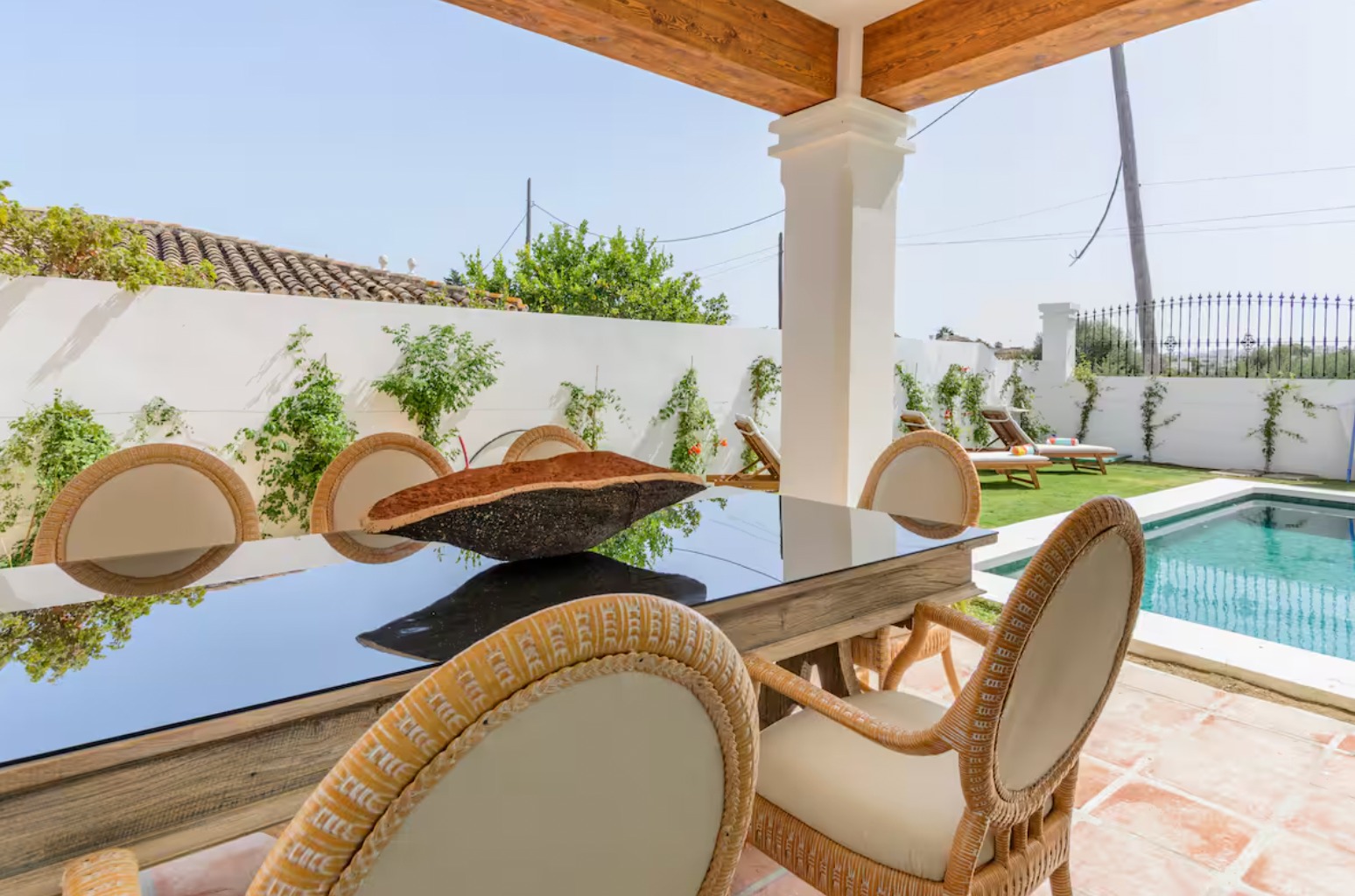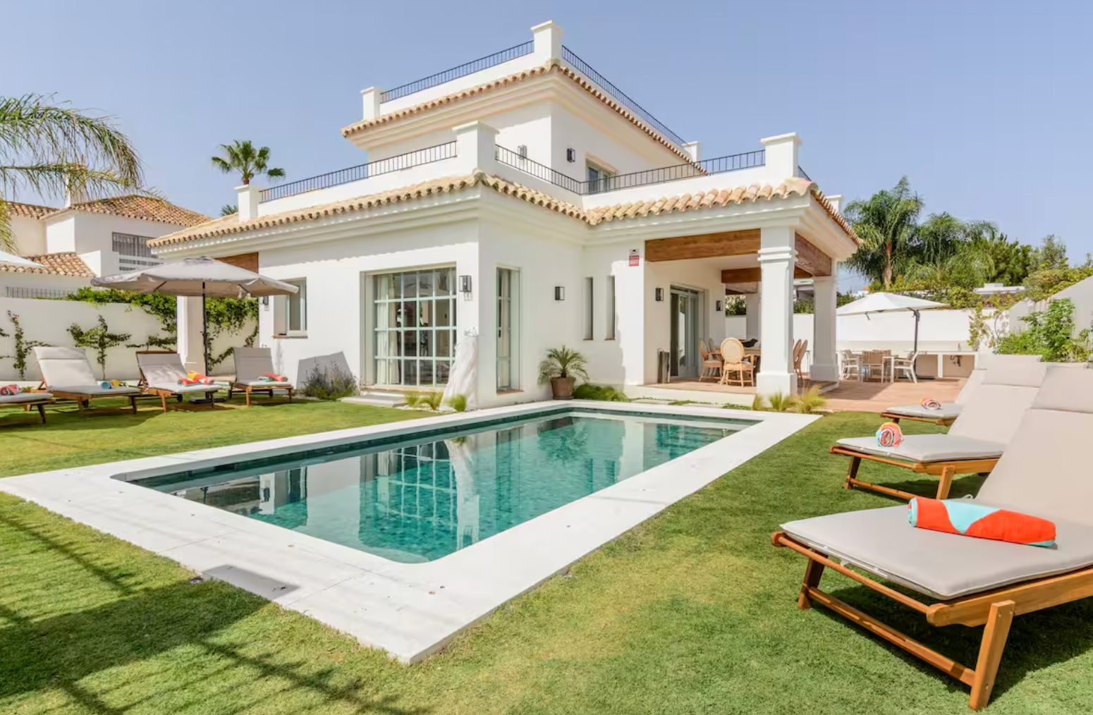 Welcome to this stunning 5-bedroom villa in the heart of San Pedro de Alcántara, just a 3-minute walk from the beach. This beautifully designed home combines Andalusian charm with modern comforts, offering a perfect retreat for families and groups.