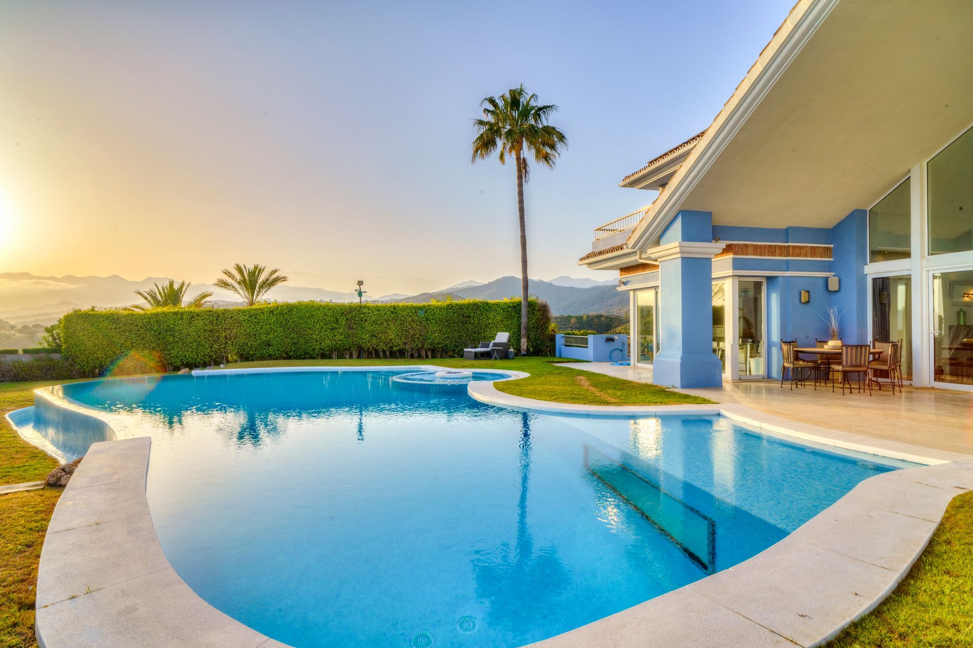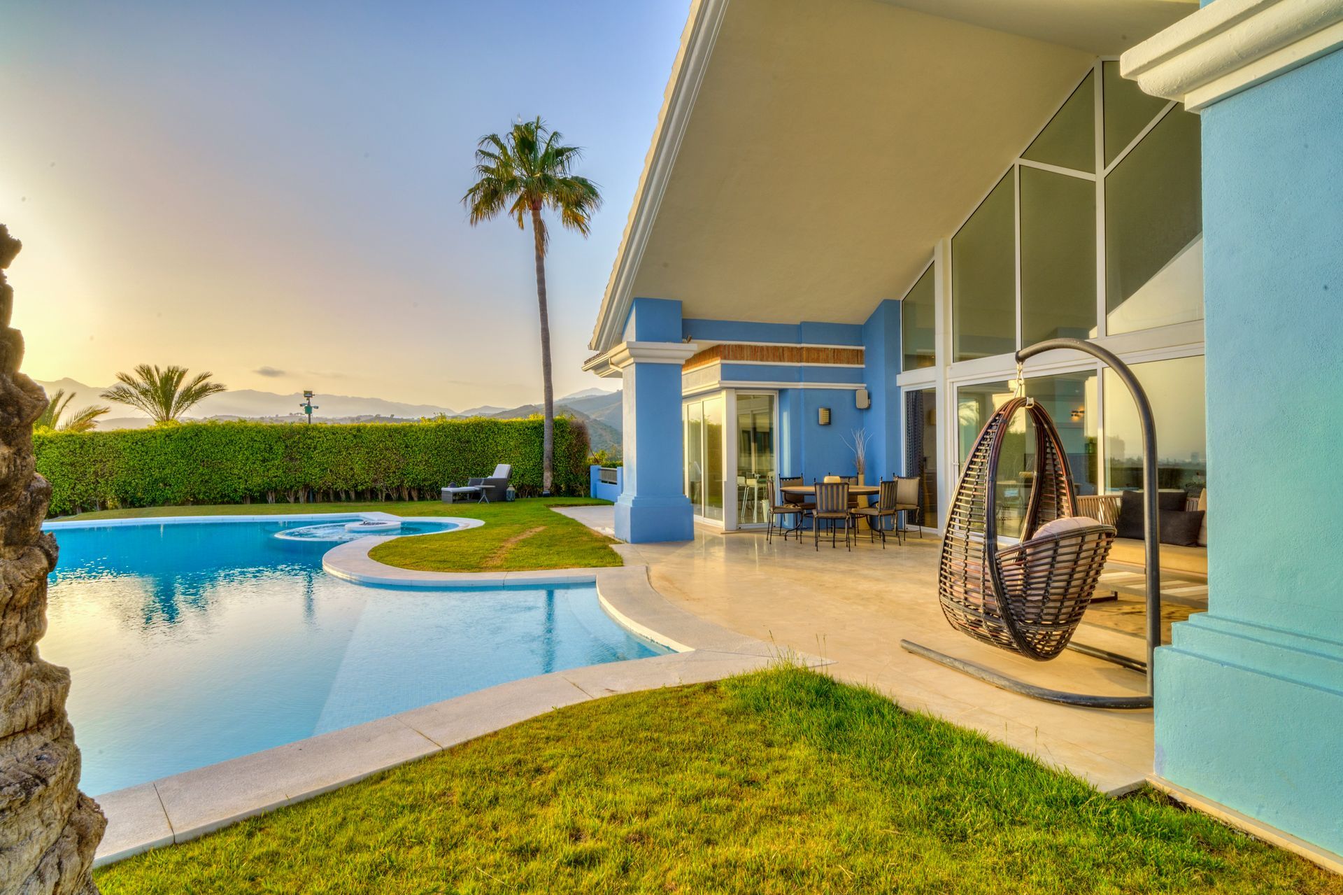 Welcome to this exquisite villa, thoughtfully designed to maximize the stunning views from every corner of the pool and living area. This luxurious retreat offers a sense of privacy and spaciousness, allowing guests to unwind in their own private haven or gather together in the inviting lounge and jacuzzi area by the pool.
