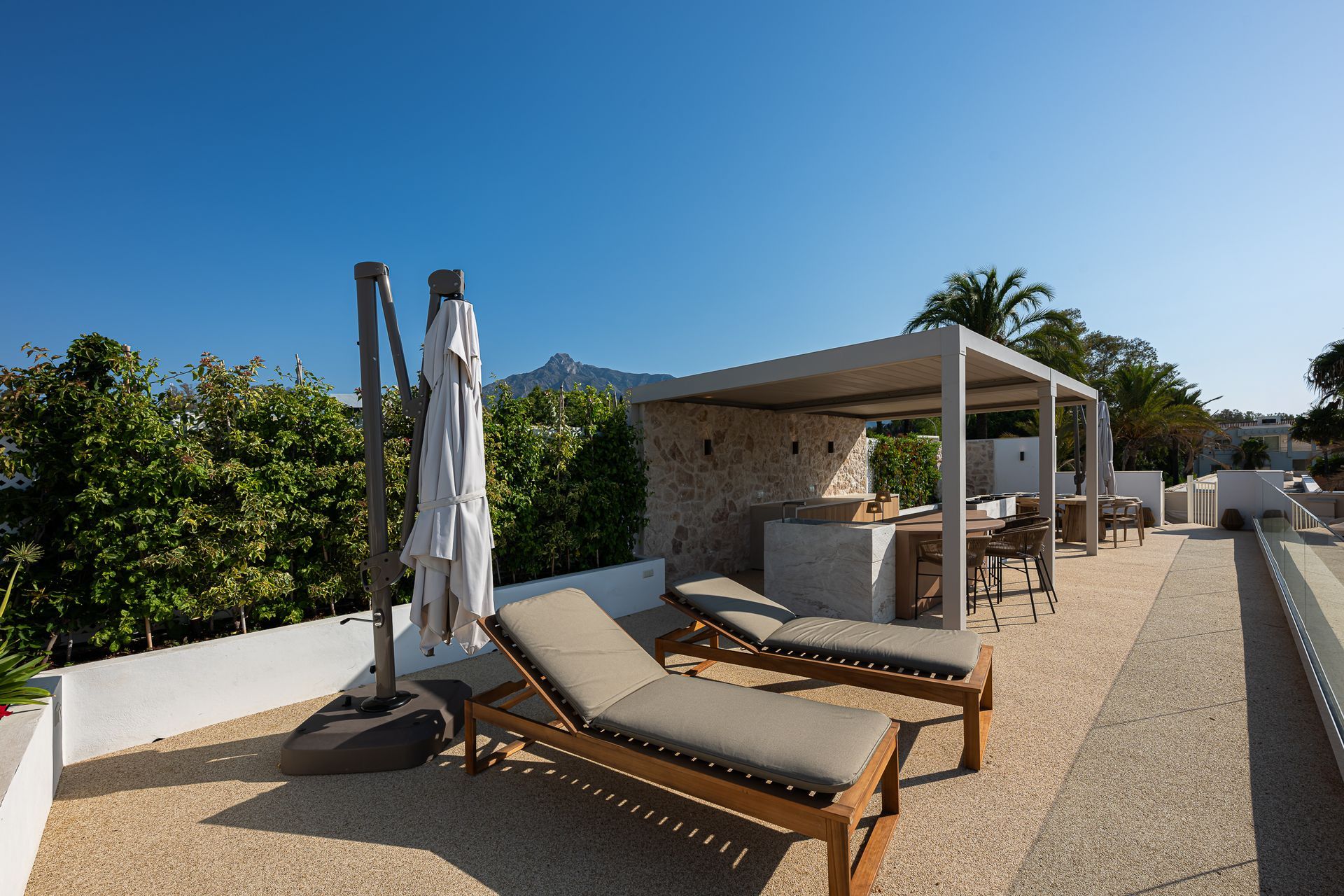 Nuestra exclusiva villa a estrenar tiene una arquitectura verdaderamente vanguardista. Para los cazadores de espacios únicos, este lugar es simplemente una joya. Ubicado en una parcela privada en una ubicación privilegiada, uno puede literalmente caminar hasta tiendas, restaurantes, supermercados y farmacias, todo al estar en una zona muy privada y remota. Puerto Banús está a 2-3 minutos en coche. Los campos de golf más prestigiosos están a tiro de piedra de esta obra maestra de villa. Esta lujosa mega villa ha sido perfectamente diseñada para disfrutar del verano interminable.