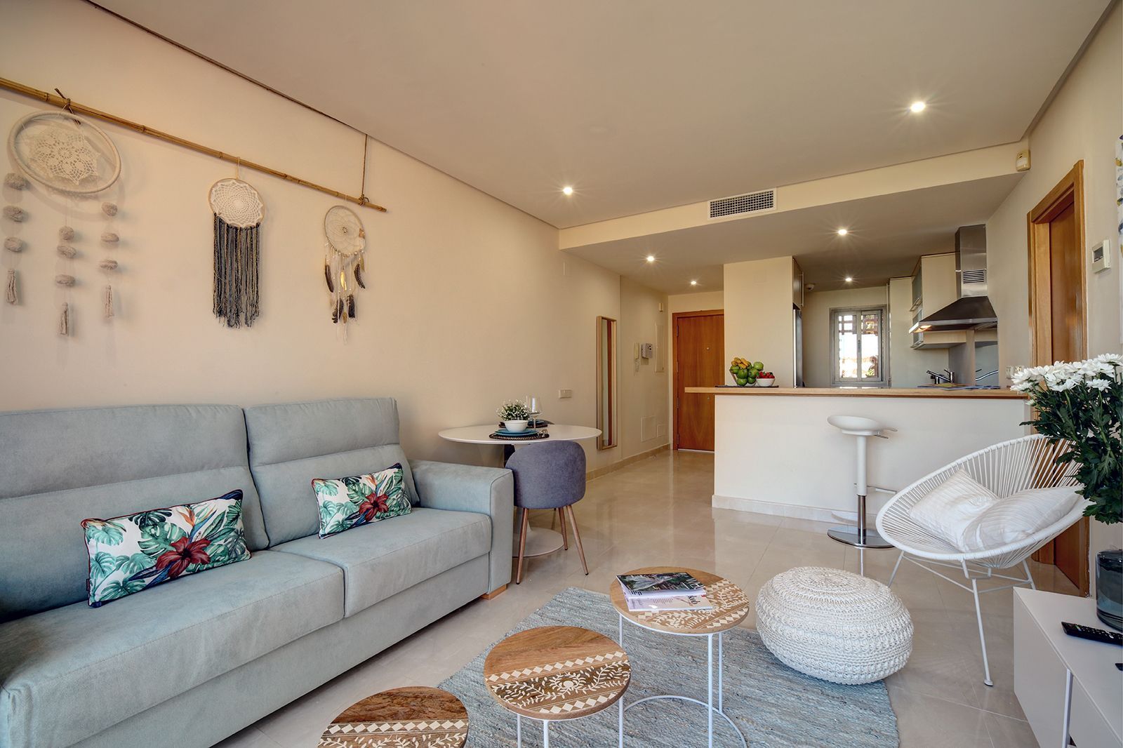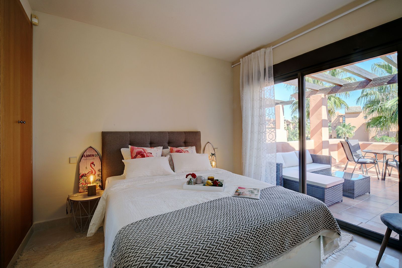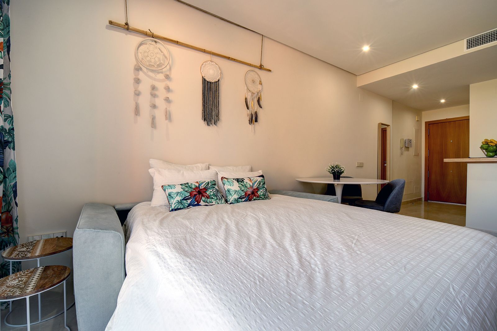 Our apartment is styled with a vibrant tropical flair, perfectly complementing the modern Andalusian architecture of the complex. Thoughtfully decorated to high standards and in line with current designer trends, this fully equipped one-bedroom getaway offers a comfortable and stylish setting for your holiday.