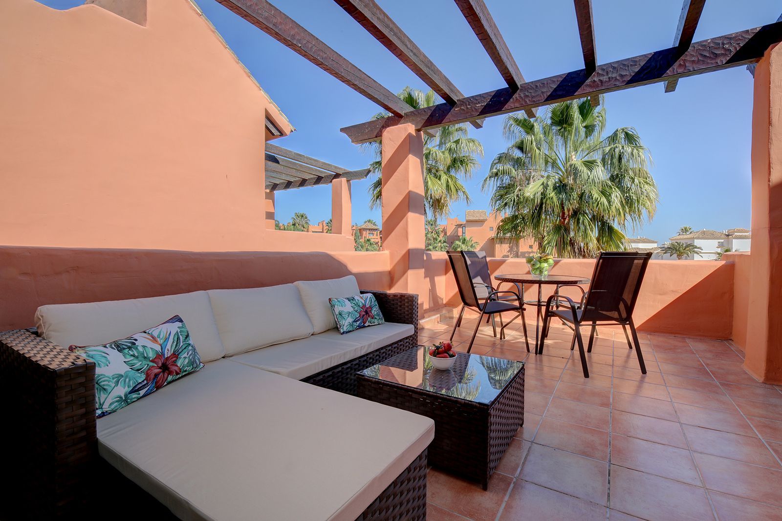 Beautiful penthouse apartment, ideal for a romantic getaway under the Mediterranean sunshine. Situated in the popular Sotoserena complex, guests can enjoy a wide array of amenities throughout their stay.