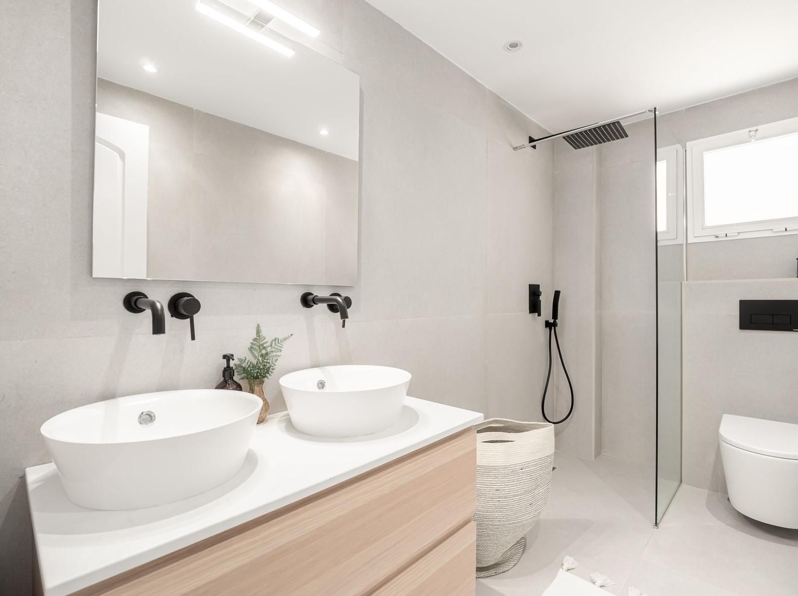 Our space has been thoughtfully designed to reflect the latest interior trends, combining the clean lines and functionality of Scandinavian style with the warmth and comfort of Spanish living. The fully equipped kitchen has been curated down to the smallest detail, with all items carefully selected to complement the flat’s aesthetic.
